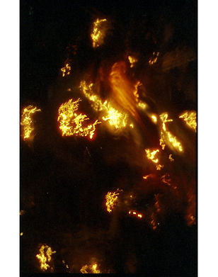 Set against the quietude of the forest, the charred remnants and glowing embers become a visual and sensory dialogue between textile, body and the natural world. This work invites viewers to reflect on the thresholds between creation and decay, material and spirit, presence and disappearance — and to reconsider fire not solely as a force of obliteration but as an agent of transformation and poetic resonance.
